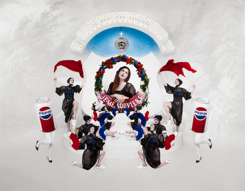 The project chronicles their journey referencing the visual language found in heraldry. As an early form of political branding, it denotes personal progeny and royal alliances as well as regional iconography. Each scene was constructed using cardboard cutouts and digital manipulation to create a theatrical three-dimensional coat of arms. The images allude to the Filles du Roi’s social and historical environment but not without incorporating elements from contemporary society, specifically French-Canadian cultural tropes and signifiers.
