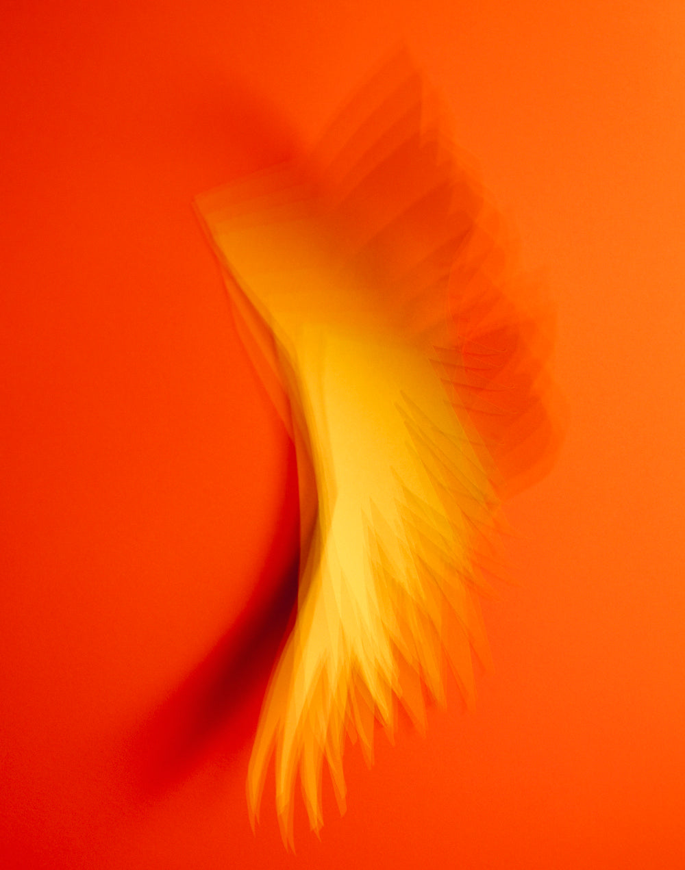 The process for this series involves creating minimalist colour paper shapes which Samuel photographs while slowly dancing around the subject with his camera, hand-held and set on long exposures.