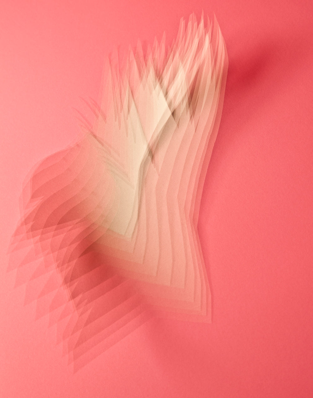 The process for this series involves creating minimalist colour paper shapes which Samuel photographs while slowly dancing around the subject with his camera, hand-held and set on long exposures.