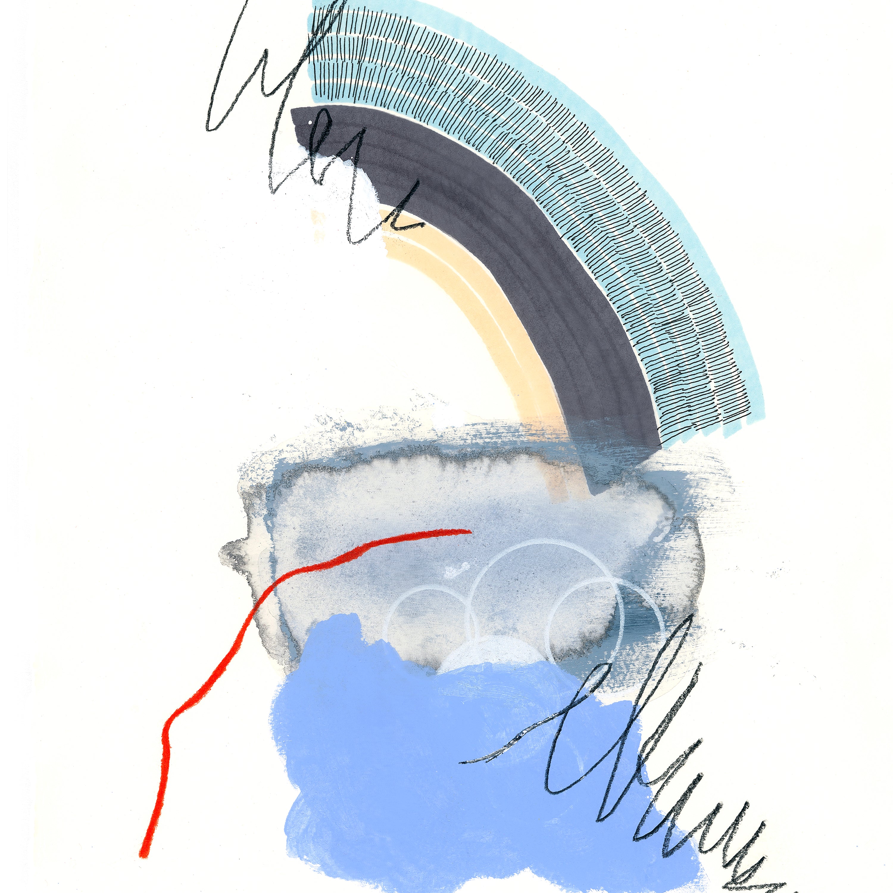 Jeremy’s work is a visual conversation, drawing from thoughts, memories and experiences, that unfolds into unique perspectives. Through motion and juxtaposition of shape, colour and texture, a story is revealed. A deep navy blue could symbolize a woeful moment; bright droplets of yellow, an explosion of friendly laughter; A quick, rough mark could be a moment of tired frustration. His work comes from that visceral feeling, a visual language that shows vulnerability and emotion.