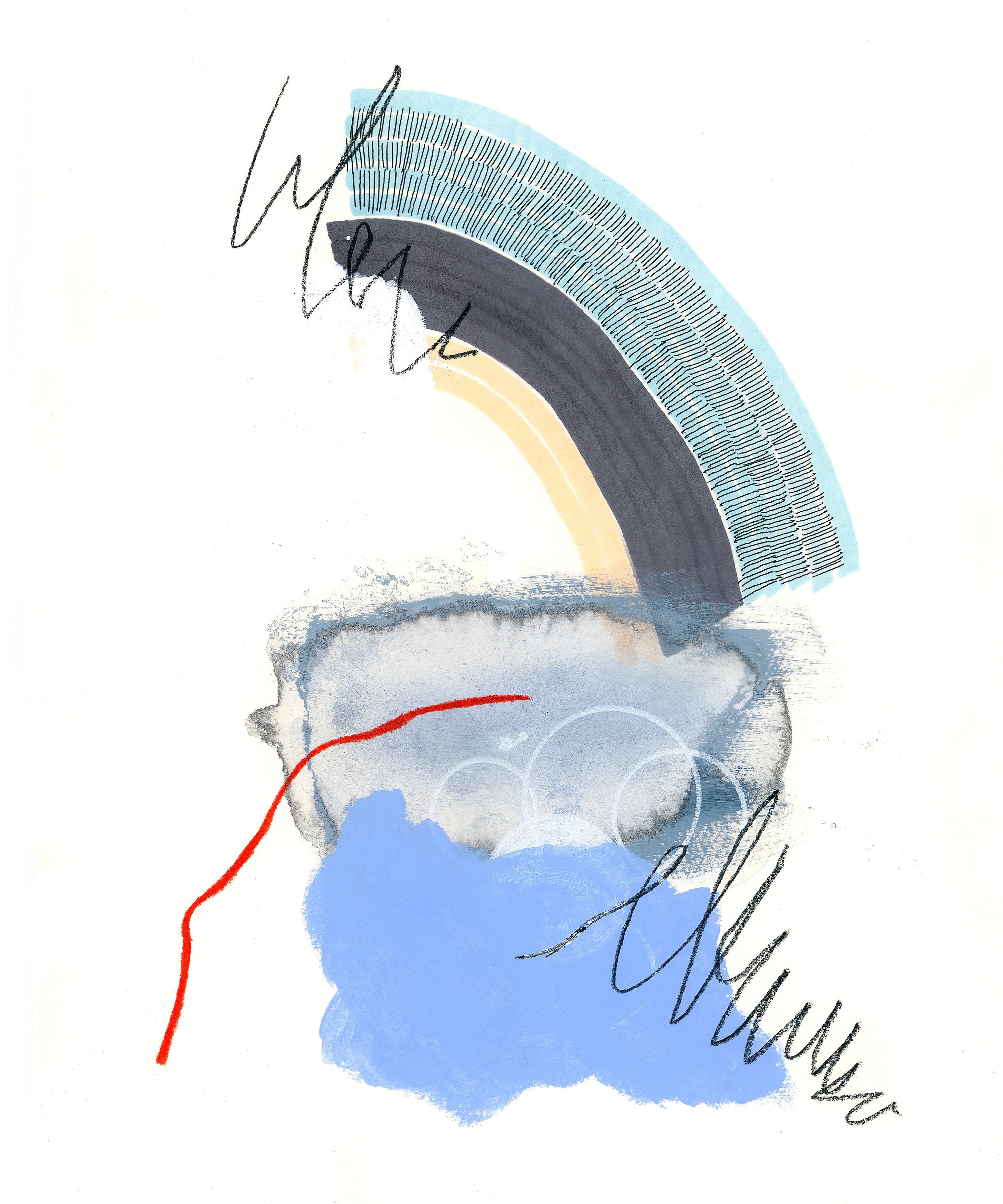 Jeremy’s work is a visual conversation, drawing from thoughts, memories and experiences, that unfolds into unique perspectives. Through motion and juxtaposition of shape, colour and texture, a story is revealed. A deep navy blue could symbolize a woeful moment; bright droplets of yellow, an explosion of friendly laughter; A quick, rough mark could be a moment of tired frustration. His work comes from that visceral feeling, a visual language that shows vulnerability and emotion.