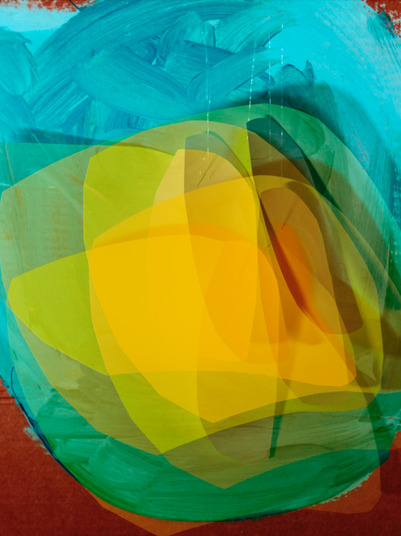 Samuel Choisy (b. 1974, France) is a photo-based visual artist. His work explores the notion of mental territory through different projects and formal approaches. His time-based creative process presents visual recordings of choreographed or improvised situations occurring only for the camera. His latest photographs combine dance, performance and light works. Choisy received a DNAP from l’École de l’Image d’Angoulême (1999) and a DNSEP from l’École des Beaux-Arts de Nantes (2001), France. He is also the recipient of the Chalmers Arts Fellowship (2015). His work has been showcased in France and many European countries, as well as in the U.S. and Canada. He currently lives and works in Toronto. Echoes is an ongoing photographic series beginning in 2018. The process for this series involves creating minimalist color paper shapes, which the artist photographs while air currents slowly dance them around the artist and his camera, hand-held and set on long exposures. Like echoes of sonar fathoming the depth of an unknown yet somewhat familiar environment, the landscape-inspired forms created in these images with their different scale ratios, relay ideas of vastness, plains, cliffs, and summits.