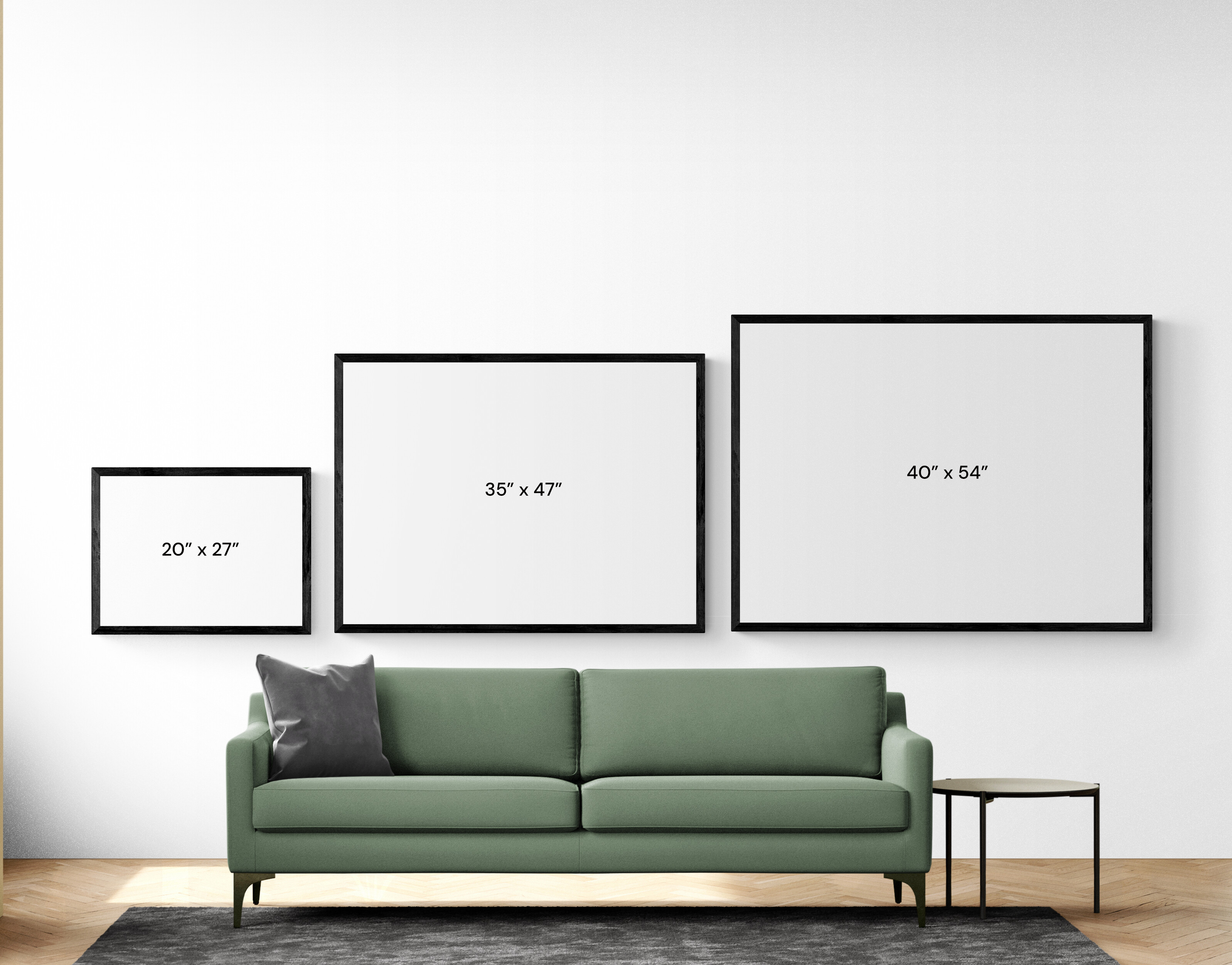Canadian orders are framed in Toronto, American orders are framed in California (no duties!). All frames come with D-rings for installation and our free downloadable installation guide.