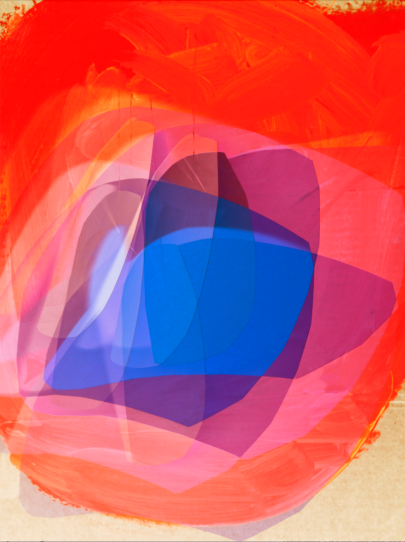 Samuel Choisy (b. 1974, France) is a photo-based visual artist. His work explores the notion of mental territory through different projects and formal approaches. His time-based creative process presents visual recordings of choreographed or improvised situations occurring only for the camera. His latest photographs combine dance, performance and light works. Choisy received a DNAP from l’École de l’Image d’Angoulême (1999) and a DNSEP from l’École des Beaux-Arts de Nantes (2001), France. He is also the recipient of the Chalmers Arts Fellowship (2015). His work has been showcased in France and many European countries, as well as in the U.S. and Canada. He currently lives and works in Toronto. Echoes is an ongoing photographic series beginning in 2018. The process for this series involves creating minimalist color paper shapes, which the artist photographs while air currents slowly dance them around the artist and his camera, hand-held and set on long exposures. Like echoes of sonar fathoming the depth of an unknown yet somewhat familiar environment, the landscape-inspired forms created in these images with their different scale ratios, relay ideas of vastness, plains, cliffs, and summits.