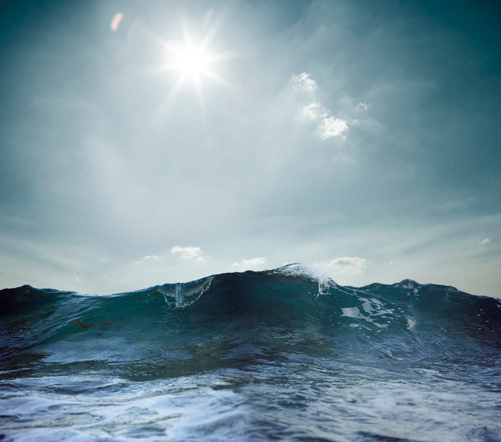 Each detailed nuance and gesture of cloud and waters’ surface is a character. They are carefully painted into a choreographed, waterscape dance. When all images are hung in a strategic row, they align into their own wave pattern.