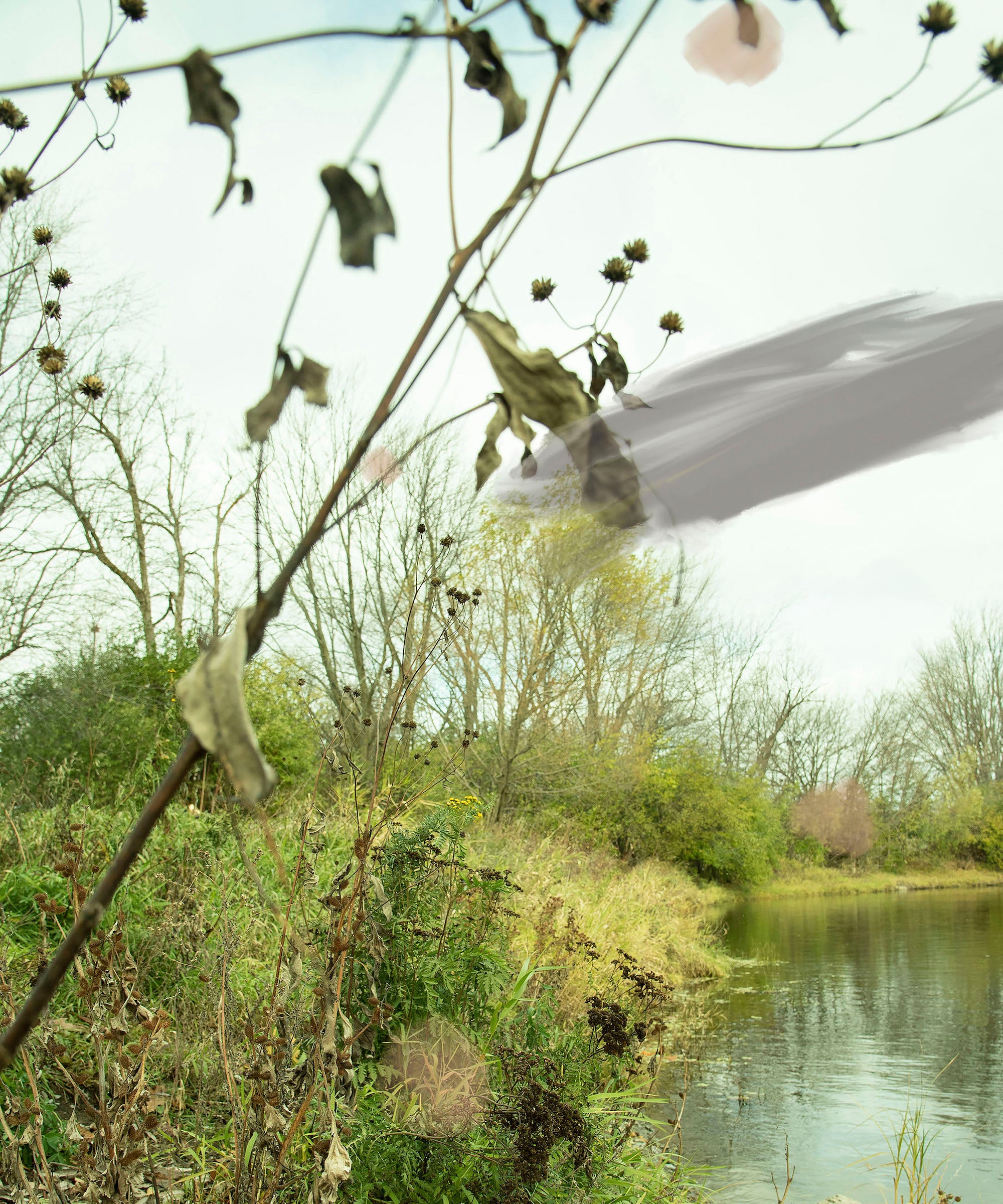 Ottawa-based artist Heidi Conrod draws inspiration from a wide-range of sources, spanning from science, literature, nature and philosophy, to Abstract Expressionism and Surrealism. Conrod’s work joins together painting and drawing, abstraction and representation, in intuitive and improvisational ways. Through the act of layering, forms and shapes are multiplied by superimposing, and the space of the canvas expanded. Her works develop over an extended period of time, and define themselves through the process of emergence. Her work explores the nature of direct visual experience, one that involves infinite movement and thought. She has exhibited her work in galleries across Canada and the United States. Her work can be seen in numerous private and public art collections."This series investigates the space of city parks, not only as physical spaces but also as mental and imaginary spaces, questioning our relationship to the environment and the increasingly blurred lines between the natural and the artificial. I took a series of photos in city parks In Ottawa over the course of several months in late summer and fall. The distortions in the works were created through collage techniques, scanning and re-photographing through painted glass. The final works offering a transformed vision of reality that oscillate between bucolic visions of nature and a surreal post natural world."