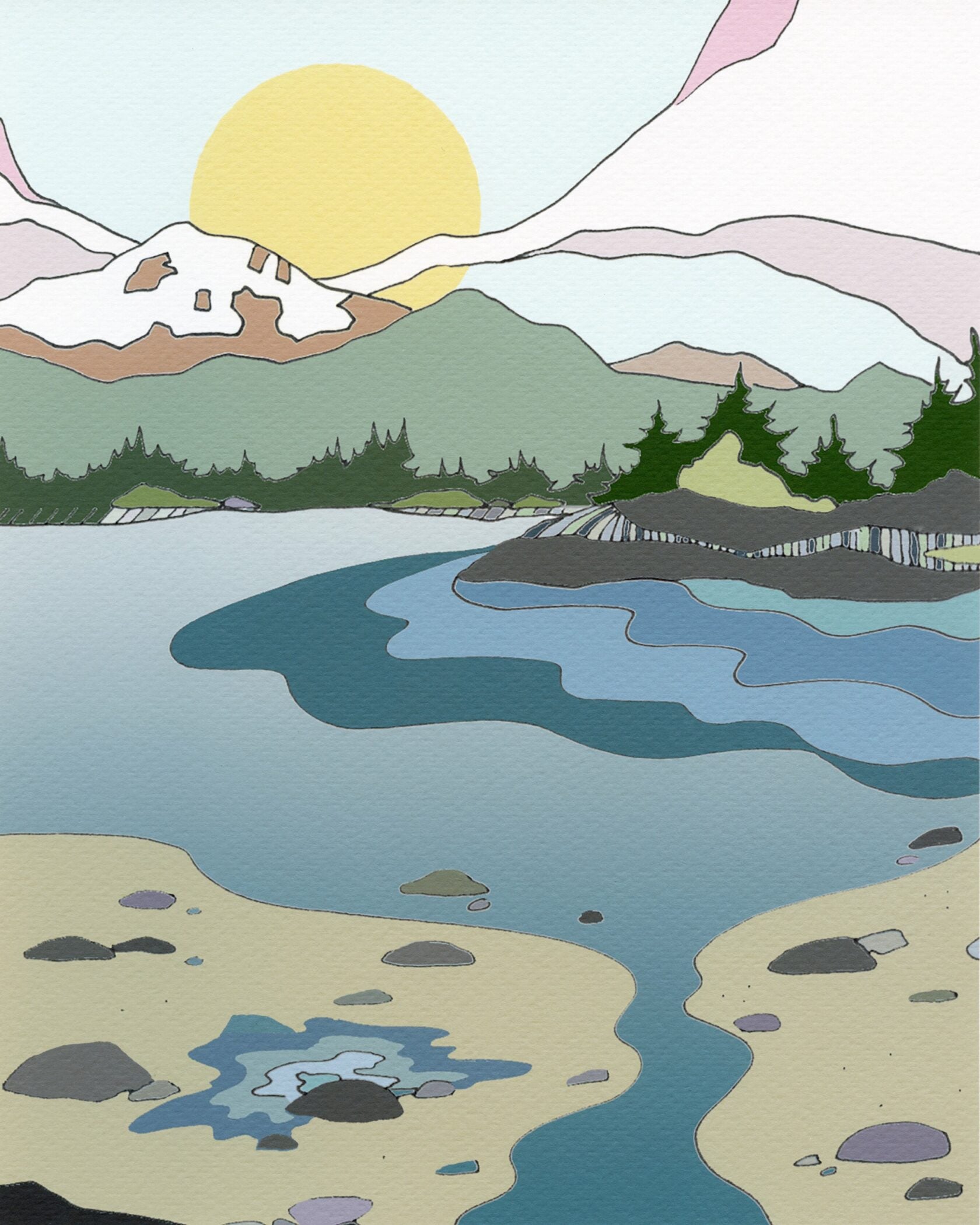 Originally hand drawn ink on paper, this series of artwork is borne out of love for the West Coast of Canada.