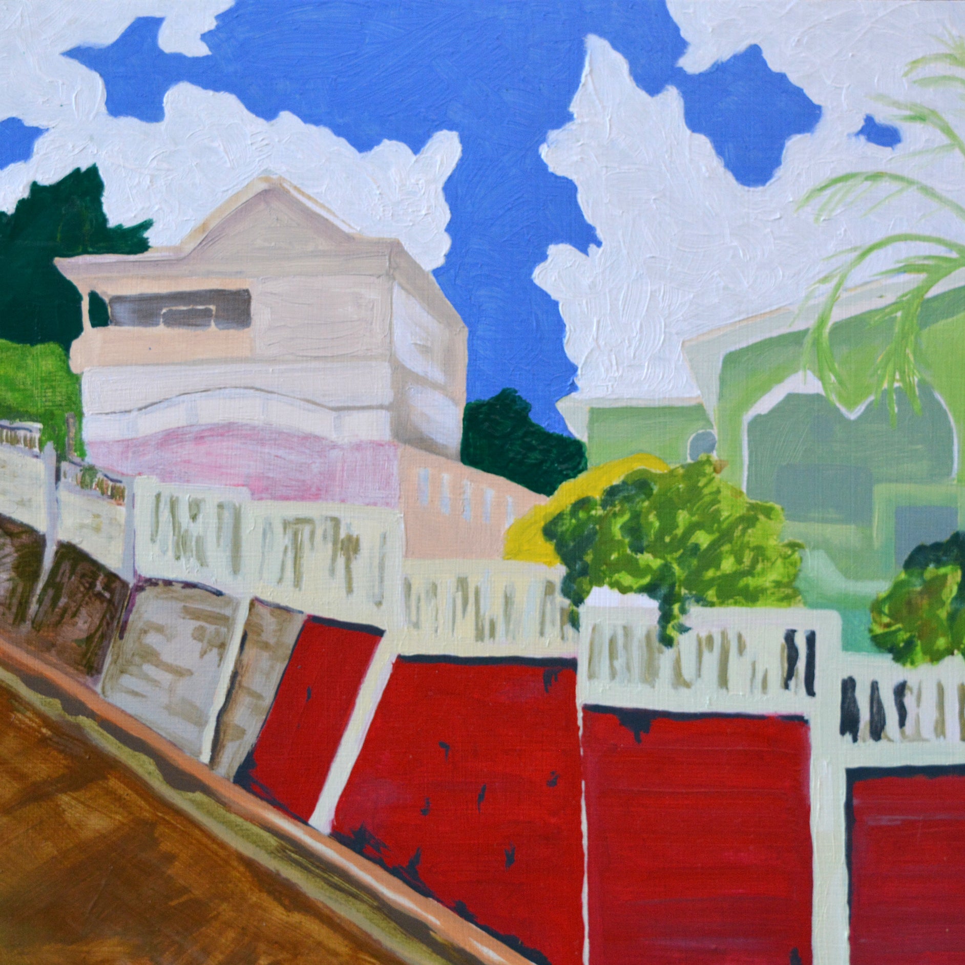 Claire Browne’s art practice focuses on the themes of self-identity and heritage. She is particularly interested in landscape and the deep connection that people have between land and self-identity. Her own family’s stories consist of travel, displacement and adapting to new lands and cultural spaces. Through painting the Caribbean island St. Vincent and the Grenadines, where her paternal family originates, Claire attempts to navigate the cultural spaces and stories of her childhood allowing for new narratives to appear.